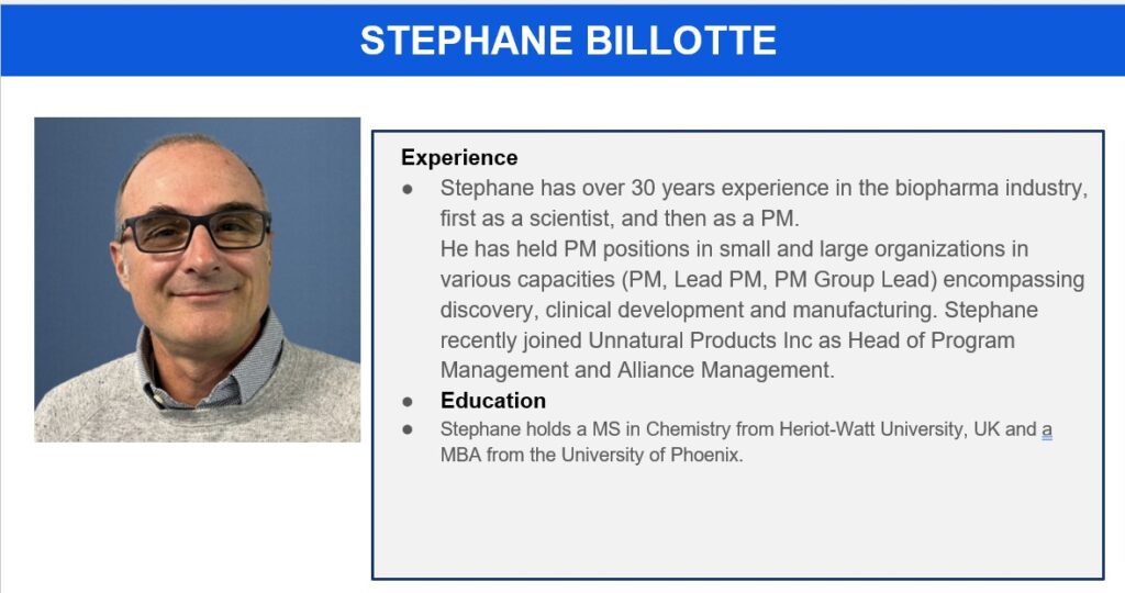 Grace R Nakayama, PhD, PMP, RAC Drugs is a Program, Portfolio, and Alliance Management Consultant. She has 25+ years of experience in the life sciences industry, including 15+ years as a PM. Grace has supported and led program teams at all stages of drug discovery and development of small molecules and biologics. She has held positions of increasing responsibilities at multiple companies, ranging from start ups, midsize biotechs, and large pharma. Grace’s core expertise includes: cross-functional team leadership, strategic thinking, effective written and verbal communication, supporting government contracts, and launching PM functionalities/systems. She is an active BioPharma PM volunteer – serving on the 2025 Annual Conference planning committee and leading the San Diego Forum to hold bimonthly networking events.